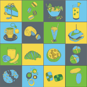 4 Types of box artwork which have the respective categories : Colombia, Dark Roast, Brazil & Medium Roast