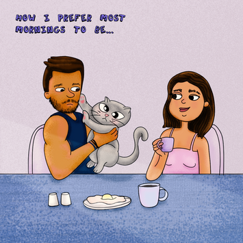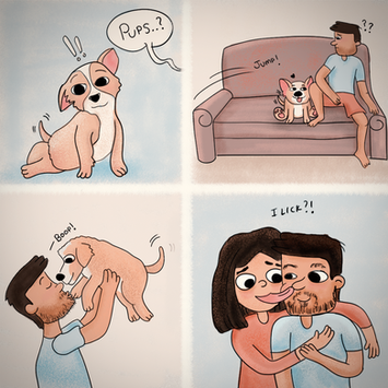 Modern comic illustrations depict relatable scenarios of individuals navigating new relationships with a friendly tone.